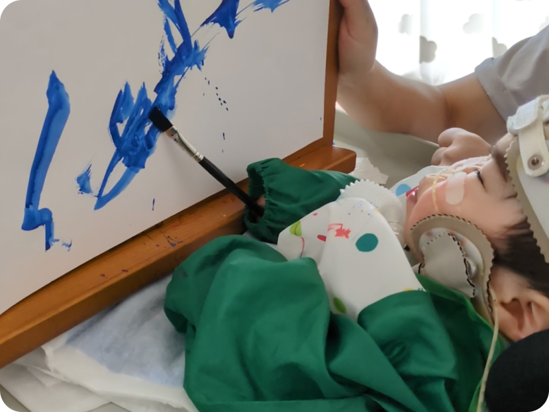 径ではPT、STも在籍していますが、訓練の時間は設けていません。普段の生活の中での適切な姿勢保持、摂食指導、マッサージなどを個別に行っています。