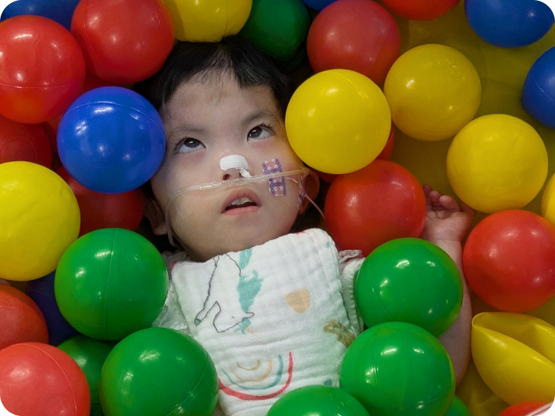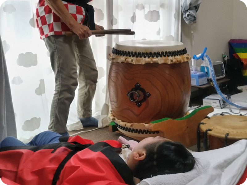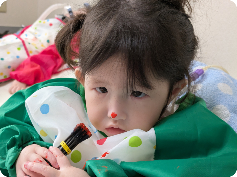 医療的ケアは子どもたちにとってなくてはならないものです。径には人工呼吸器装着、酸素療法、経鼻経管や胃ろうからの栄養摂取、気管切開部位や口鼻からの痰吸引、導尿などを必要としている子どもたちが通所しています。また、乳幼児はしっかり覚醒した時間を持ったりまとまった睡眠を取るなど、生活リズムを整え、少しずつ経口で食事や水分を摂るなどの生活力を身につけていったりしています。そして、医療サポートや安定した生活のうえに、楽しいことややってみたいことを見つけ、挑み、また友だちを知り、楽しさを分かち合ったり集団でとりくむことのおもしろさを味わっていきます。